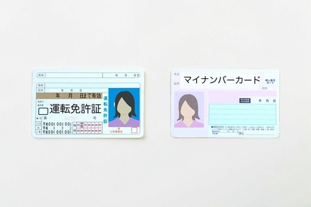 顔写真のある身分証明書(運転免許証、マイナンバーカード等)をお持ちください。本人確認をさせて頂きます。